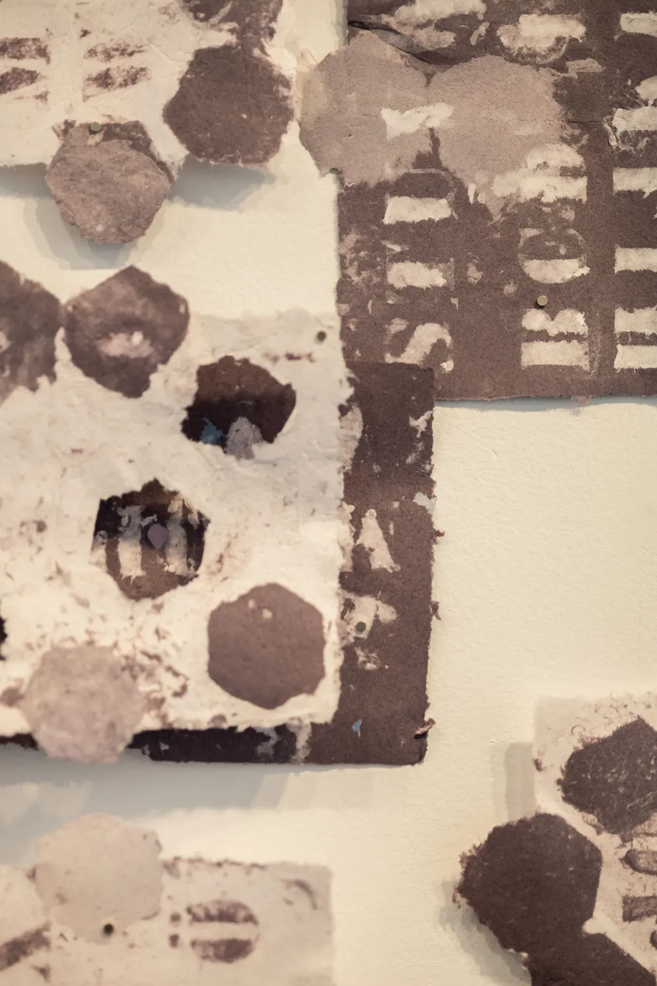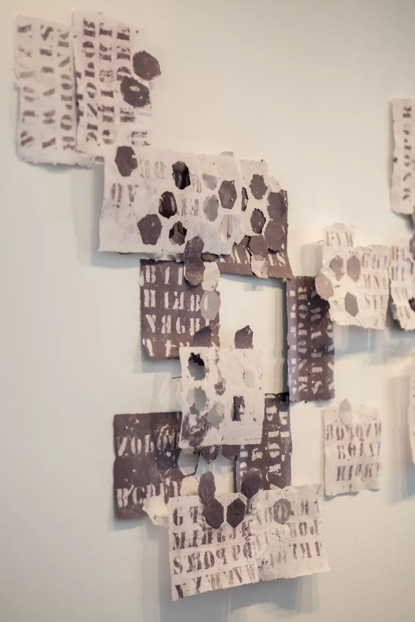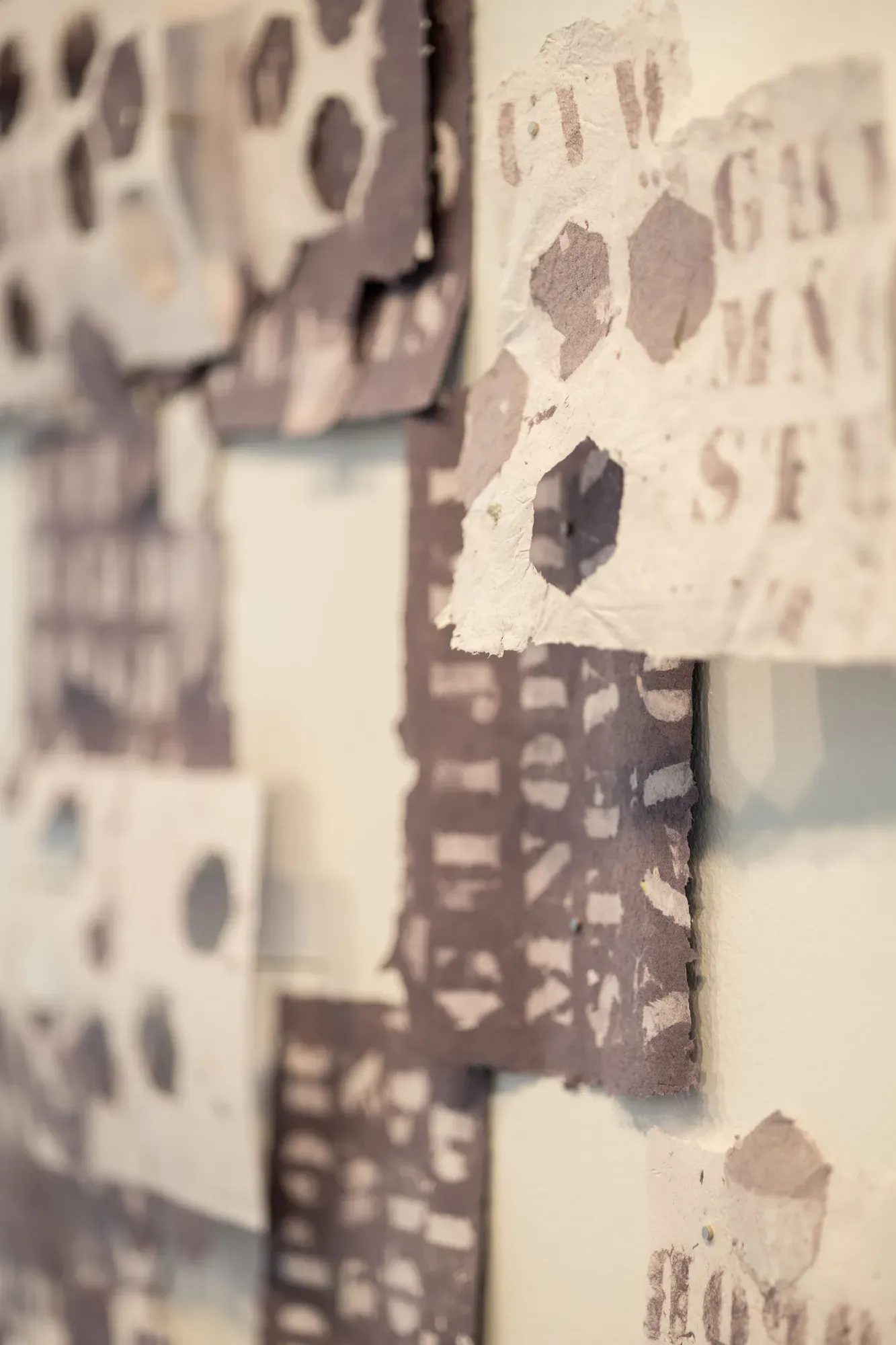 The handmade paper embodies the paradoxes that haunt Borges’ work—the tension between what we can grasp and what forever eludes us, between the finite and infinite, between silence and speech. As text dissolves into fiber, it creates a meditation on the nature of meaning itself, and our endless desire to find patterns in the infinite. In a world marked by displacement, conflict, and the fragility of human life, this process reflects the precariousness of existence, where stability is fleeting and transformation is both destructive and regenerative. The delicate, yet resilient, nature of the paper becomes a metaphor for the human condition: fragile, yet enduring; fractured, yet capable of holding new meaning.
