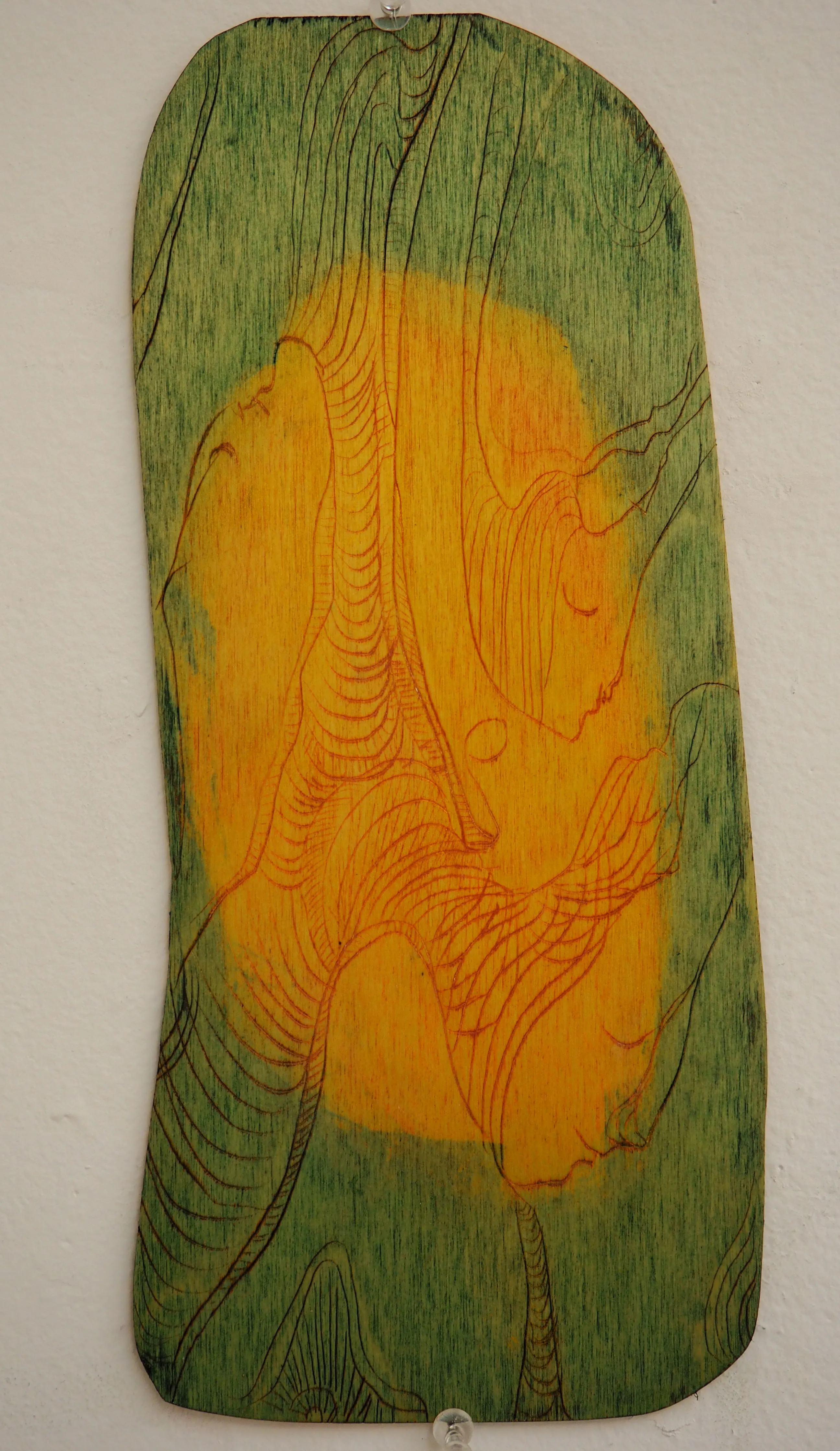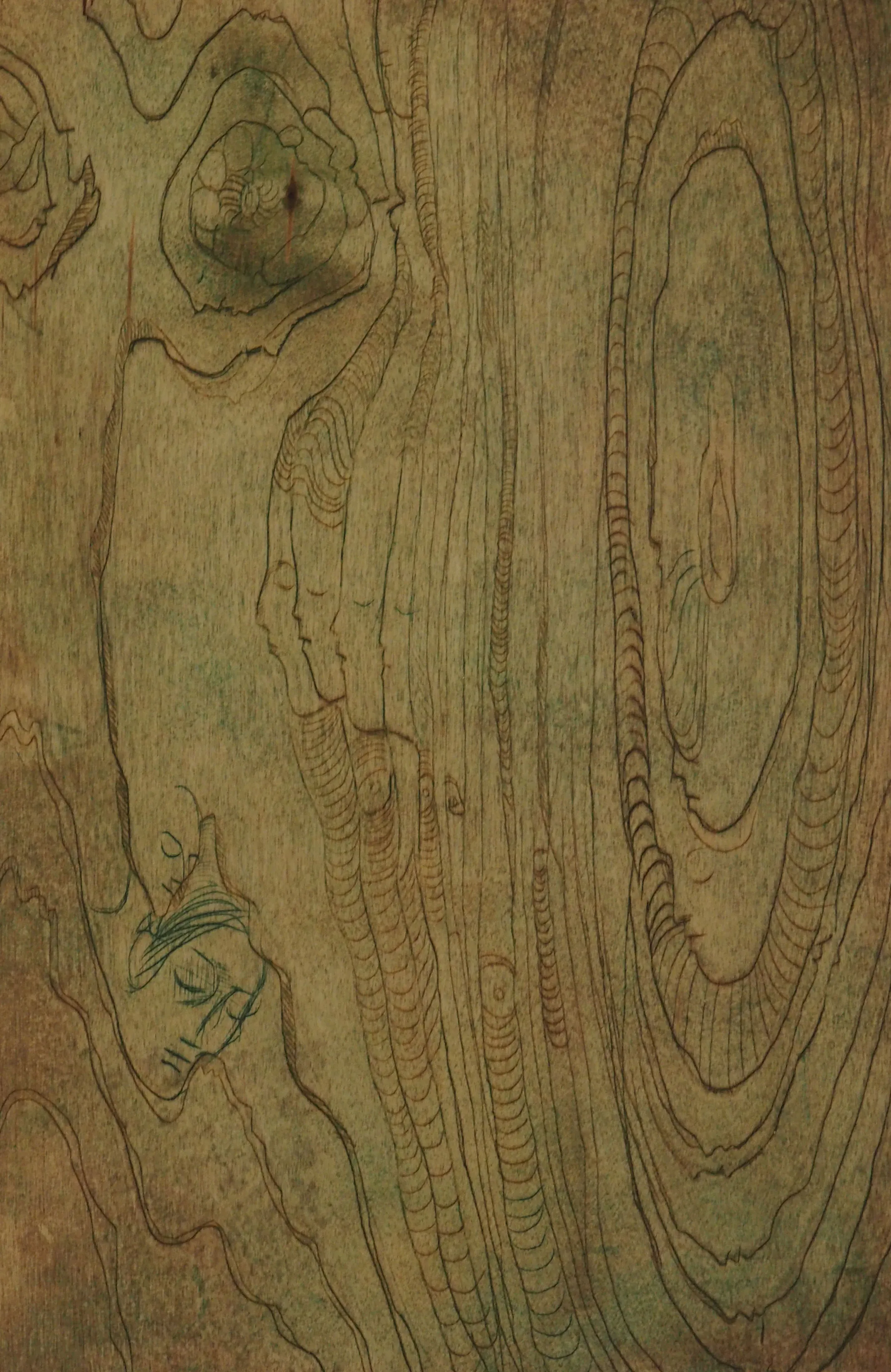 In my print series called, passengers I represent scattered silhouette figurative forms made from the wood. Inside each figure, there are several detailed hatch lines with recognizable parts of the body interwoven with the wood grains.Each silhouette represent a mere appearance of individual within the several details and unknown secrets inside. The figurative characters represent the story of people, who are traveling from one place to another, they go together although their dreams, imaginations and desires are different. There is a dialogue, a whisper spread all over;