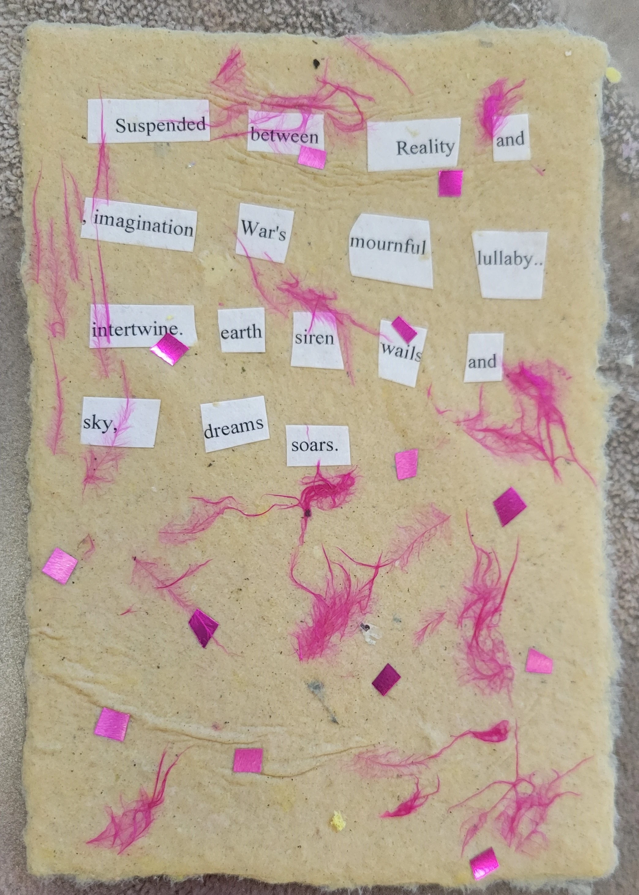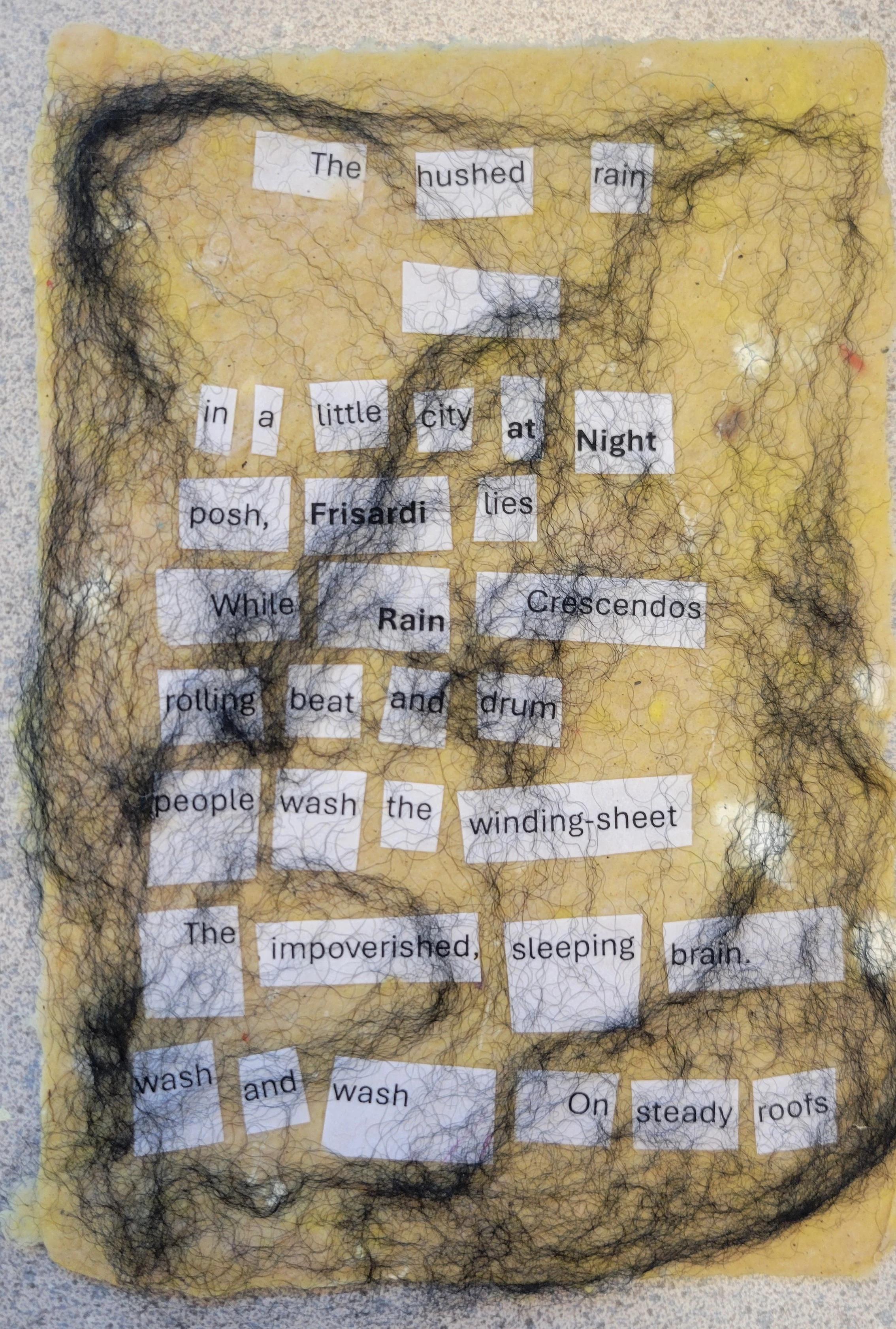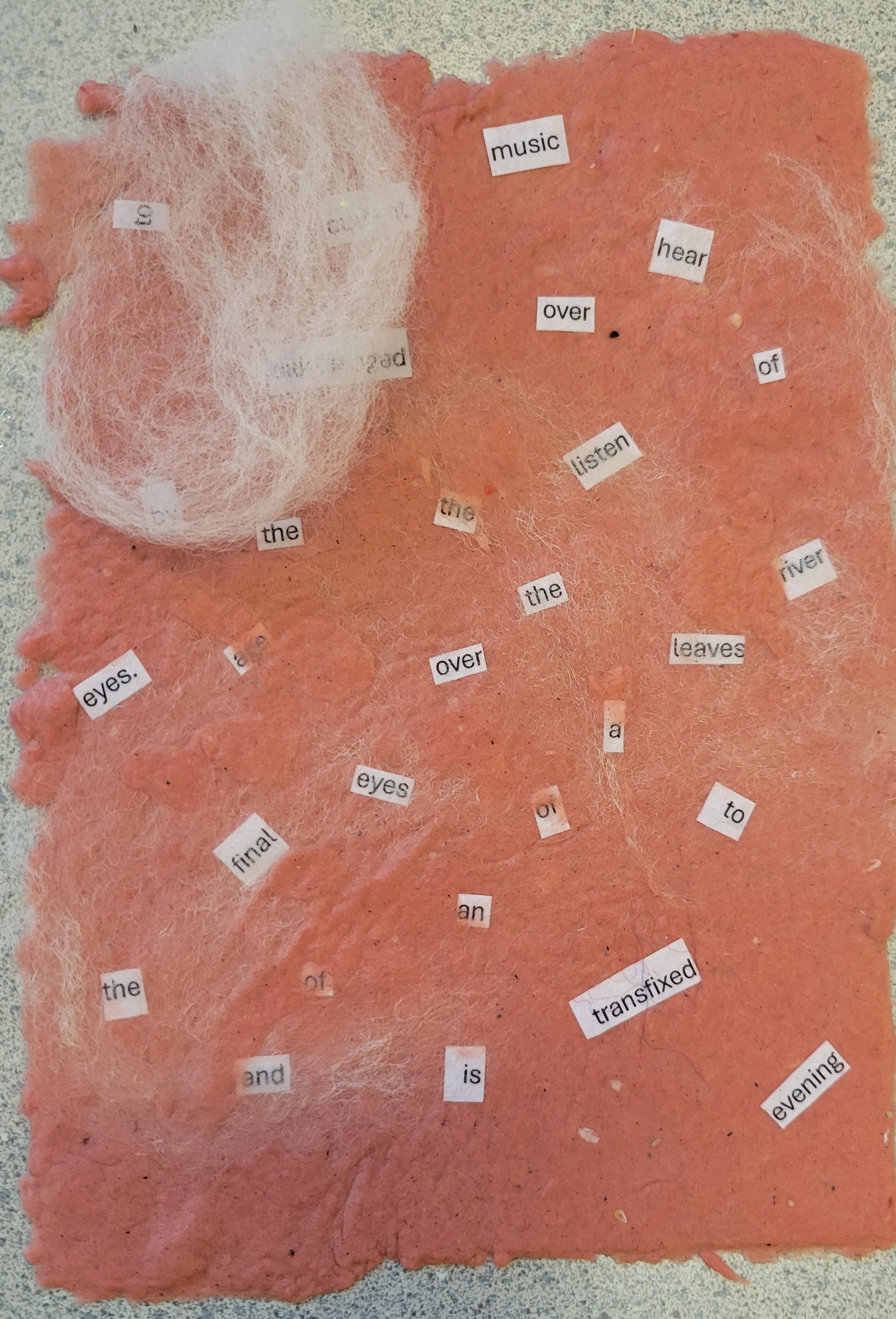 In this workshop students discover the transformative power of music and poetry collaging on handmade paper. Through carefully selected classical compositions and guided exploration, Students experience new dimensions of emotional awareness and artistic expression. This innovative approach bridges the gap between sound and language, and visual art-making, allowing their inner poet to emerge naturally through musical inspiration.
